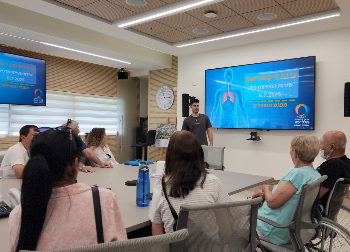 اجتماع المرضى في ورشة عمل إعادة التأهيل الرئوي في المركز الطبي هيلل يافه