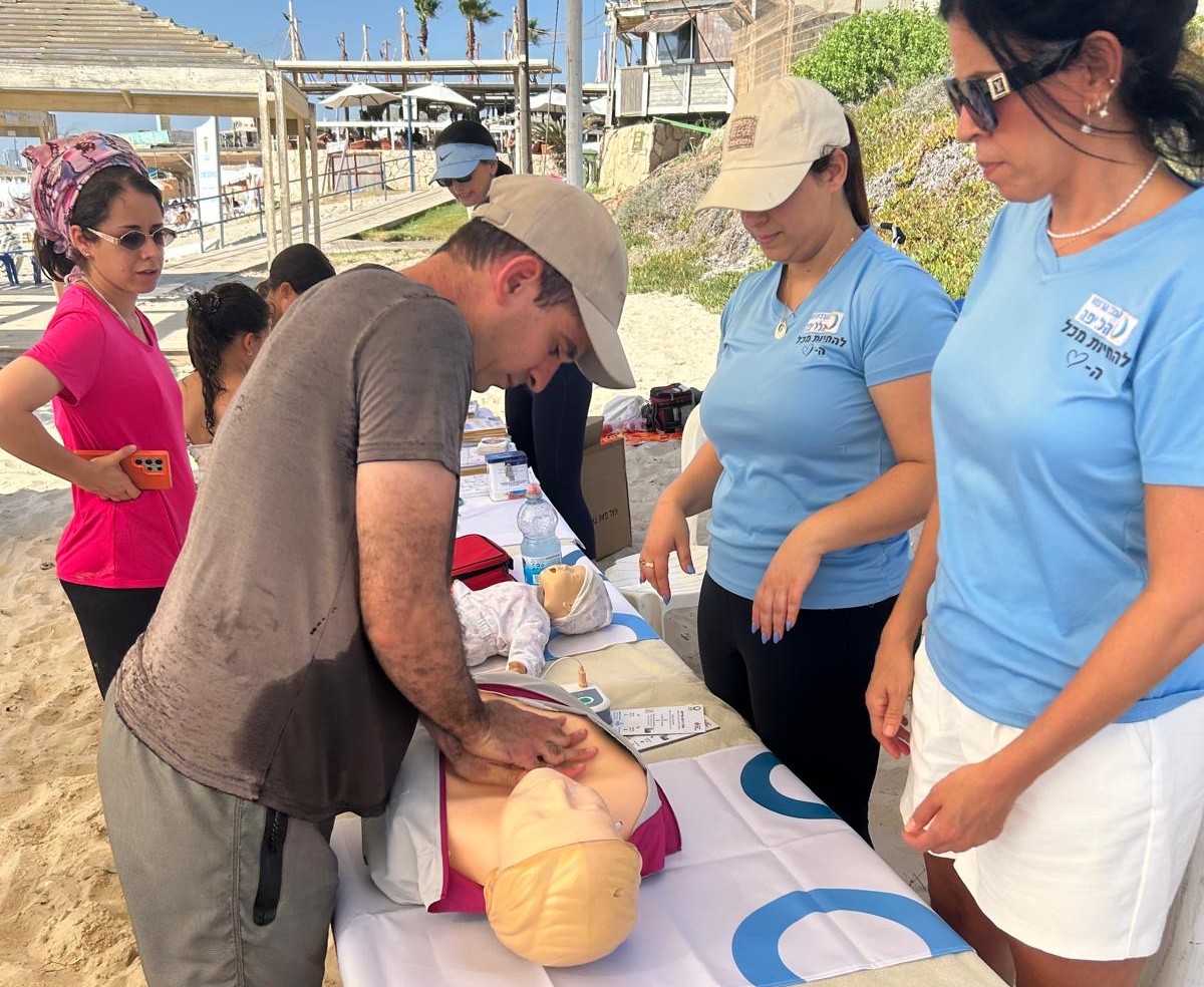 مدربي الإنعاش القلبي الرئوي في المركز الطبي هيلل يافه على شاطئ البحر