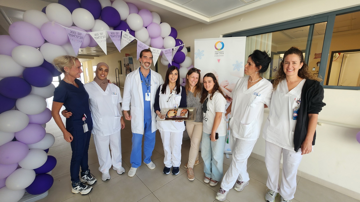 אורי לנקרי ואמה טל עם צוות הפגייה במרכז הרפואי הלל יפה