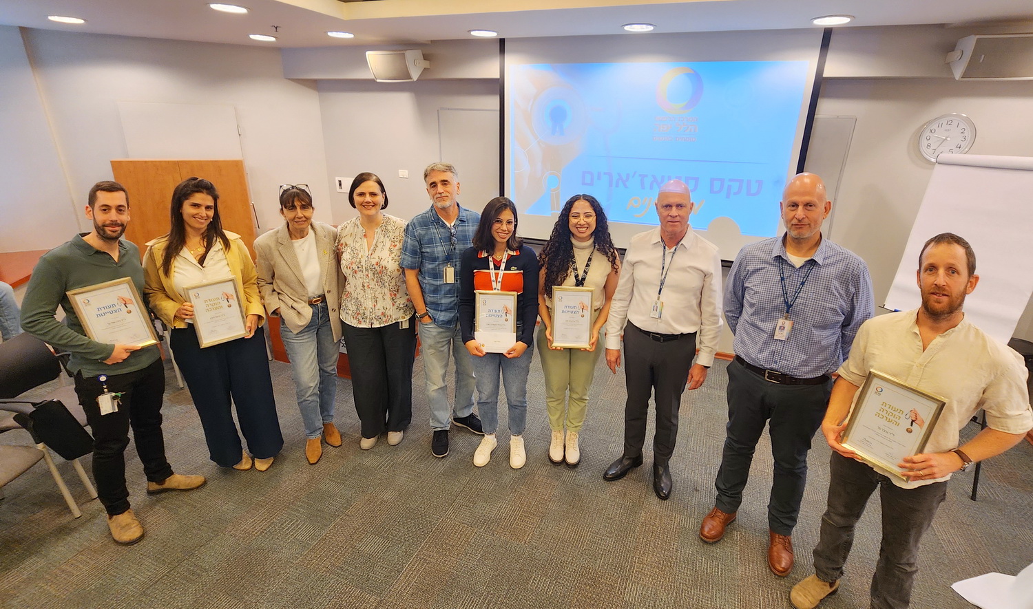 أقام المركز الطبي هيلل يافه حفله السنوي لتكريم المتدربين والمتدربات الذين أظهروا تميز مهني خلال سنة تدريبهم. اشترك في الحفل كل من إدارة المركز الطبي، مديرو مجال التدريس والتدريب، أطباء من مختلف الأقسام، بالإضافة إلى المتدربين والمتدربات المتميزين.