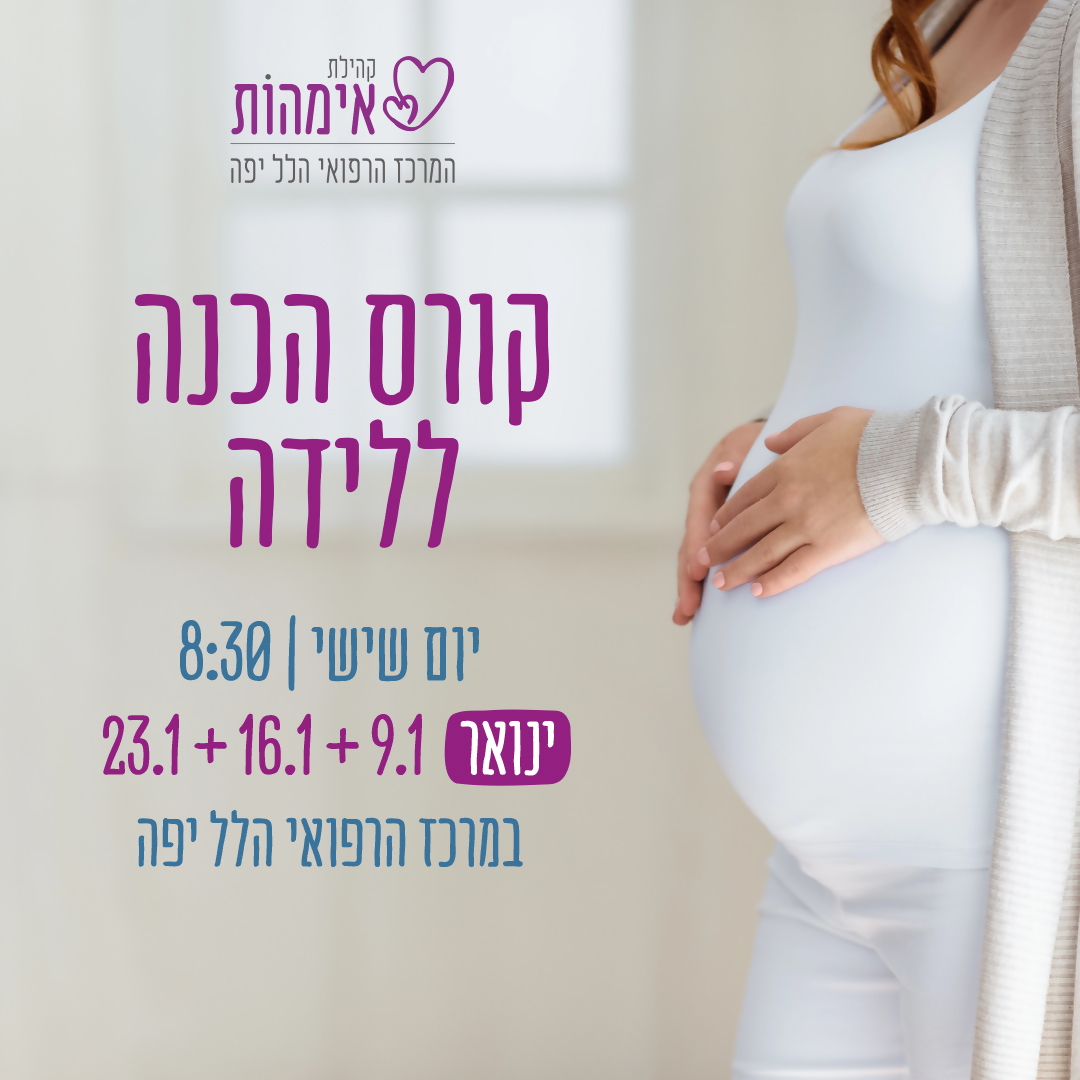 * שריון מקומך בקורס כרוך בתשלום של 400 ₪, שיוחזרו בסיום הקורס ועם הלידה במרכז הרפואי הלל יפה.