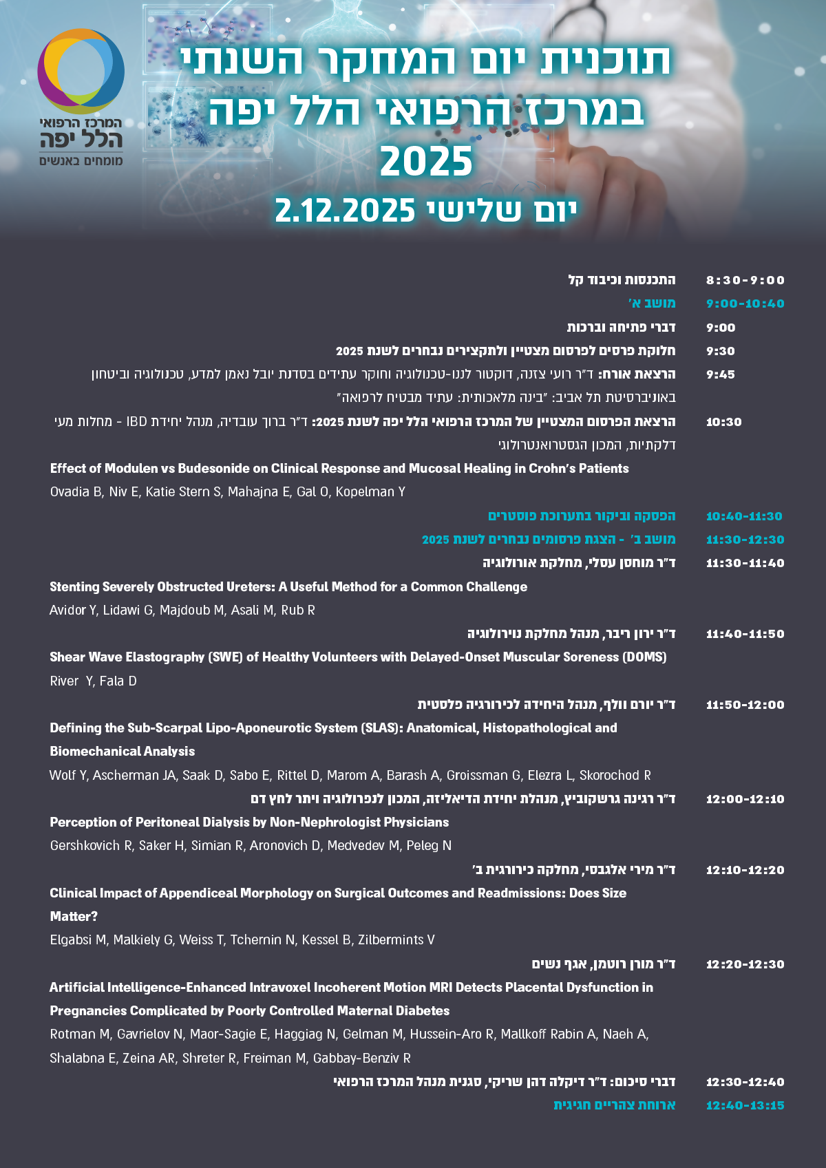 עוד ב"מה חדש" | - המרכז הרפואי הלל יפה מציג: יום המחקר 2025 – רפואה, ידע והשראה, 3/12/2025