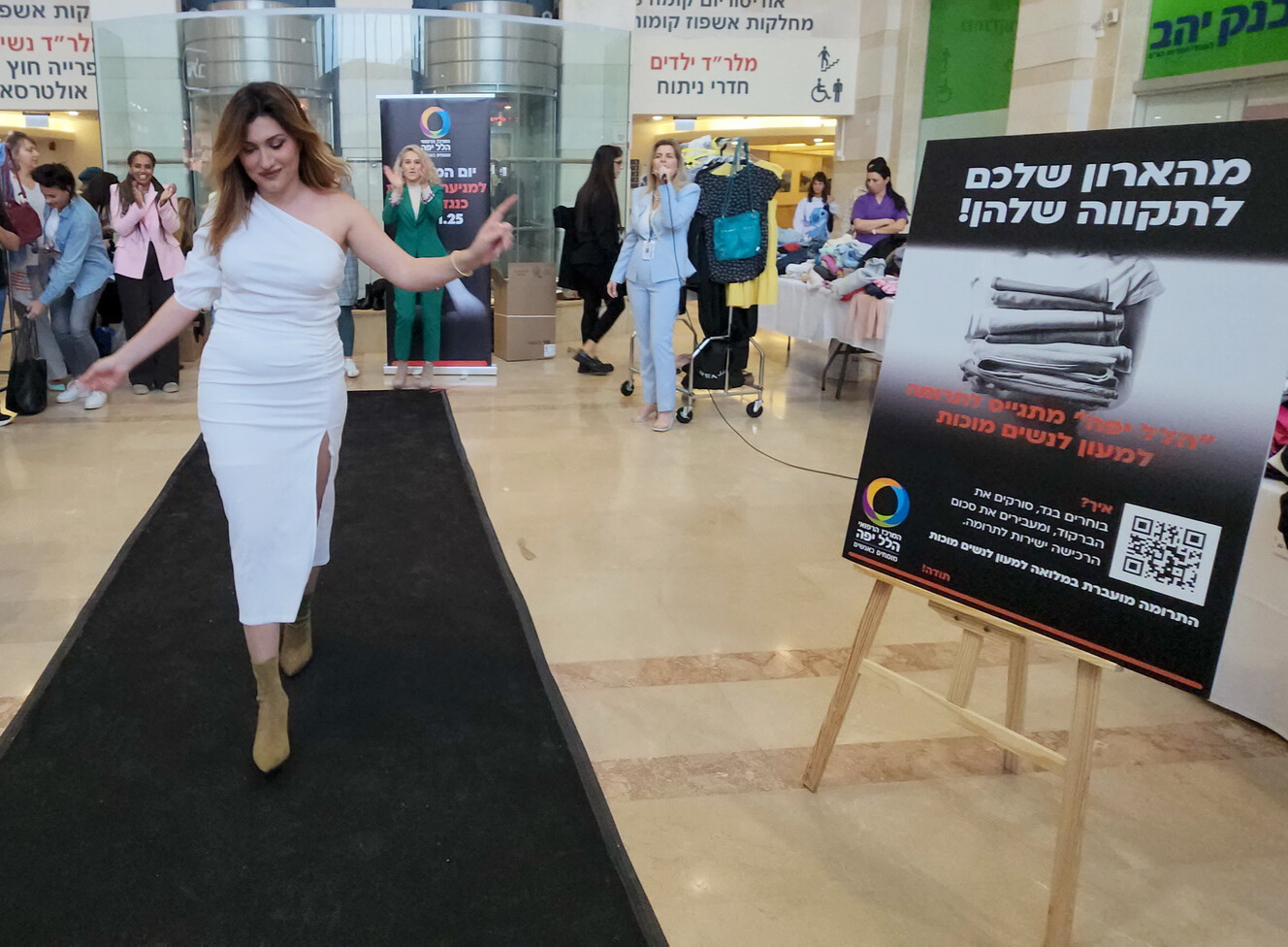 Following the lecture, at the entrance to Inpatient Building B of the medical center, there was a sale of second-hand items, collected by Hillel Yaffe Medical Center employees, with all proceeds donated to support women victims of violence. During the sale, to encourage purchases, a fashion show was held featuring the items for sale, modeled voluntarily by medical center and School of Nursing staff members.